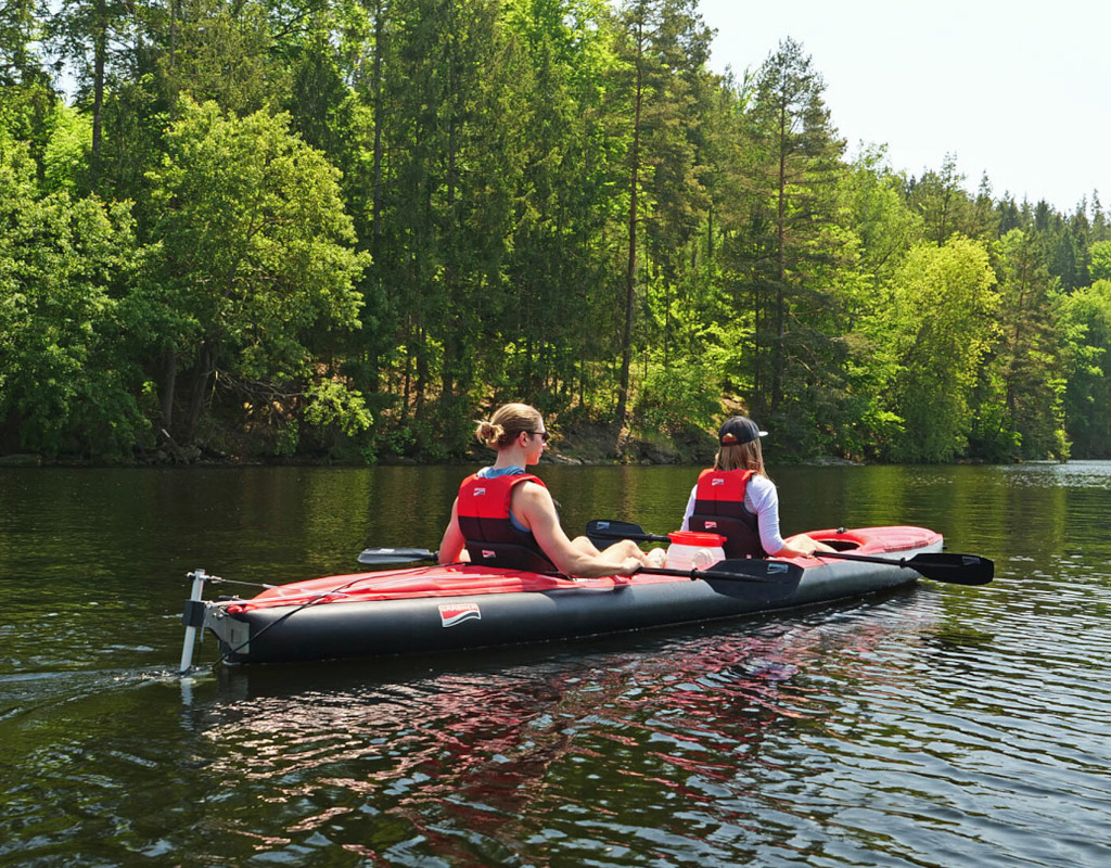 Čoln višjega cenovnega razreda za začetnike. Ta napihljivi potovalni kajak je zasnovan za 1 ali 2, tudi zelo velika odrasla, za starše z otrokom ali starejše, ki imajo raje zanesljiv in varen čoln z veliko prostora. Primeren je za dnevne izlete po jezerih in morju, srednje dolge divje vode in počasno raziskovanje rek – preprosto izstopite iz avtodoma in skočite v kajak: Neverjetno stabilen, neverjetno prostoren in se lahko uporablja celo z električnim motorjem: Udoben vsestranski čoln s preizkušenimi Grabnerjevimi lastnostmi!